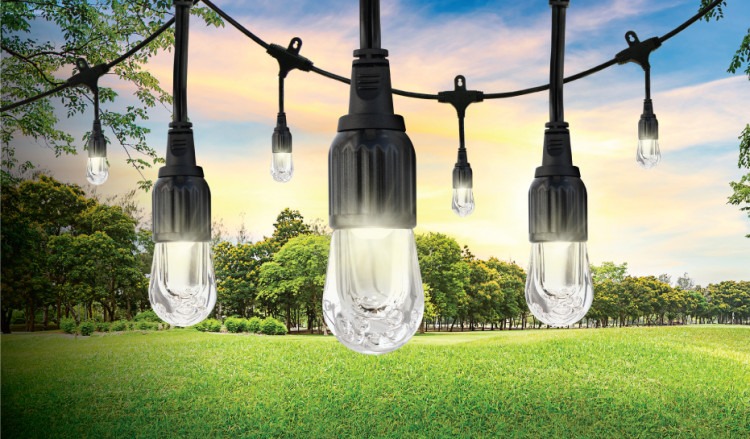 36' of LED bistro lights total 18 lights. (Minimum 1 string per 20 x 20 tent) It is not uncommon for 1 or 2 led bulbs to be out on a string of lights these are non-replaceable and will still provide plenty of light for the tent.